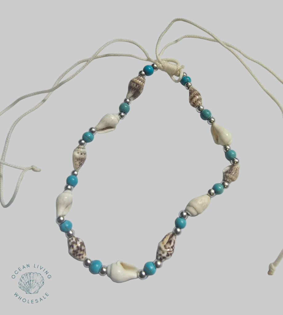 Anklet brown nassa blue bead.