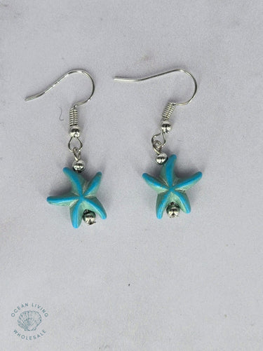 Earring Blue Starfish With Silver Beads. Earring Blue Starfish With Silver Beads.