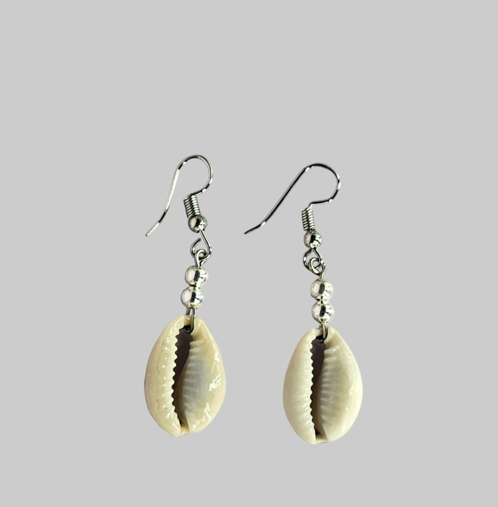 Earring with Sliced Cowrie and Two Silver Beads.