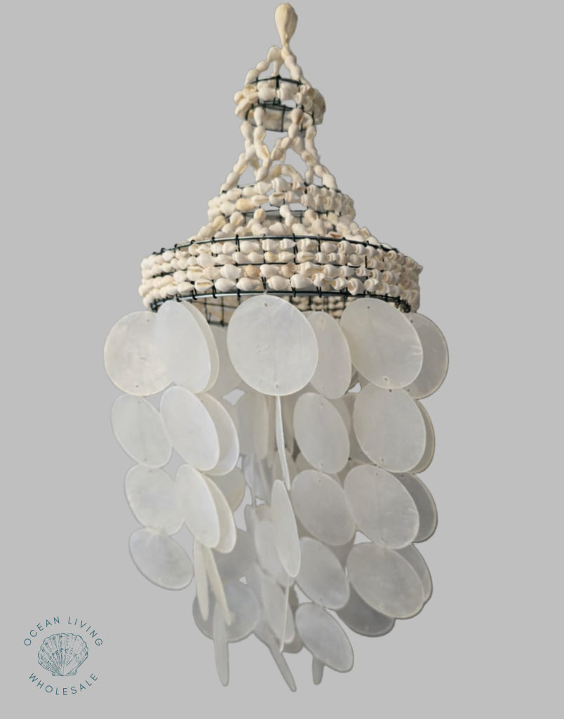 Our shell hangers and wind chimes are beautifully handcrafted in the Philippines by skilled artisans who have perfected the art of creating stunning pieces from natural materials, including Capiz shells. Each hanger and chime is made with care and attention to detail, ensuring that every piece is unique and of the highest quality.