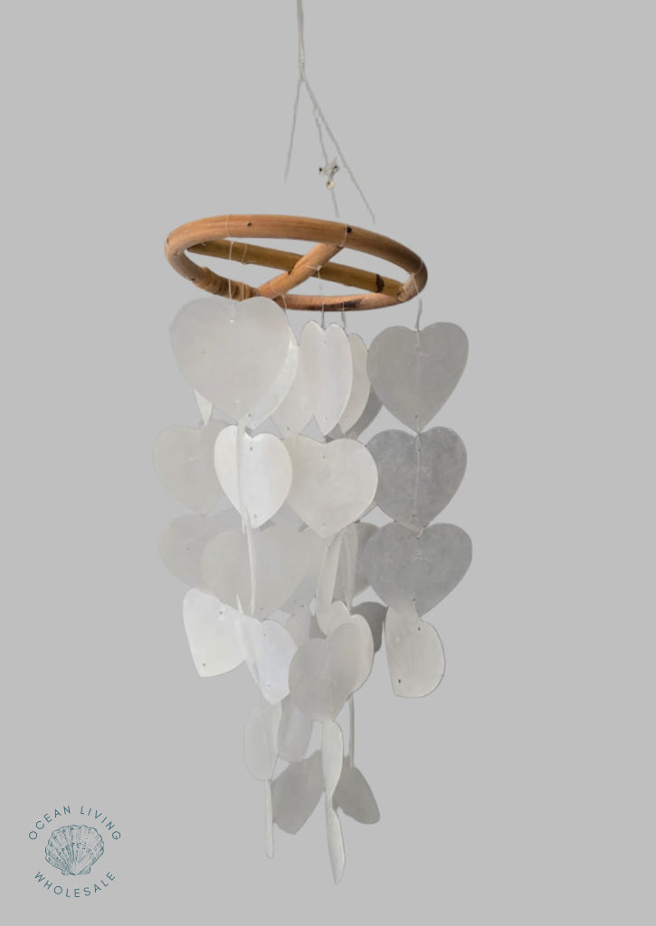 Our shell hangers and wind chimes are beautifully handcrafted in the Philippines by skilled artisans who have perfected the art of creating stunning pieces from natural materials, including Capiz shells. Each hanger and chime is made with care and attention to detail, ensuring that every piece is unique and of the highest quality.