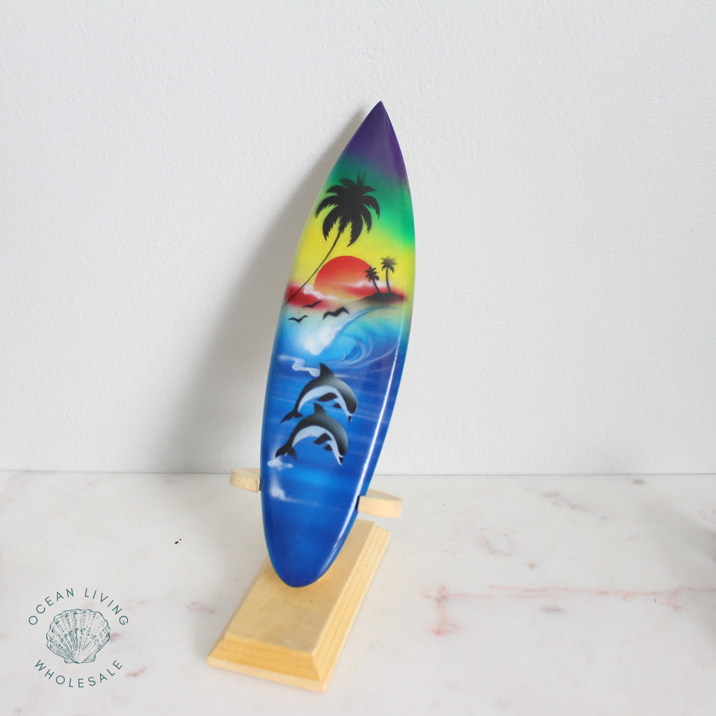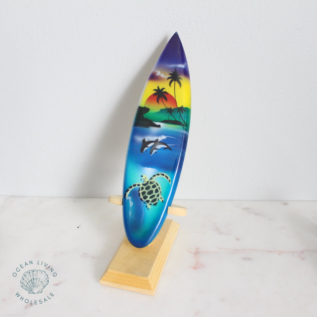 Home Shop Nautical Airbrush surfboard 10cm with stand. Assorted designs.