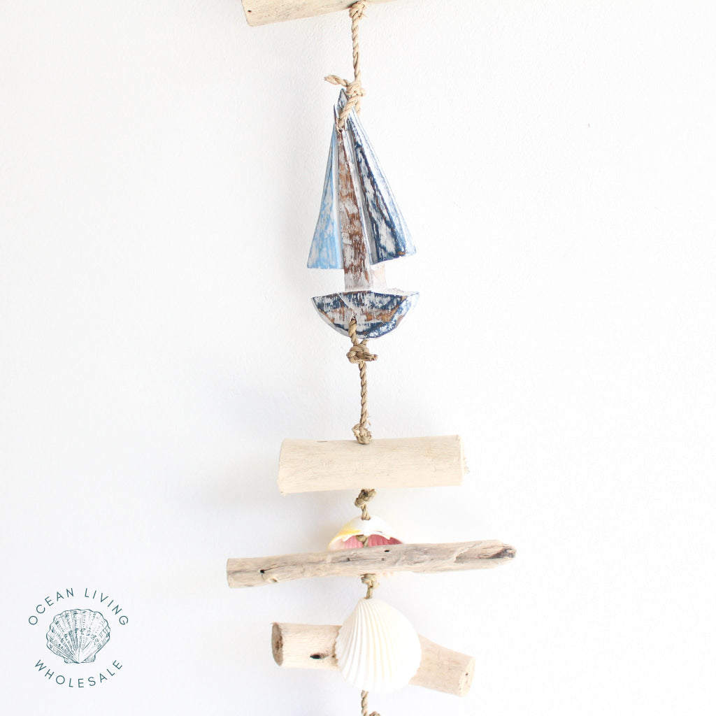 Hanger Boat With Shells Blue And White 100cm