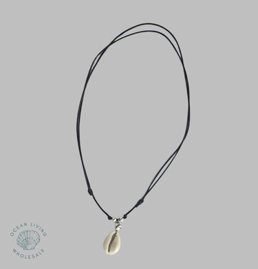 Black Cord With Sliced Cowrie And Silver Beads Necklace. Necklace Black Cord With Sliced Cowrie And Silver Beads Necklace. Necklace