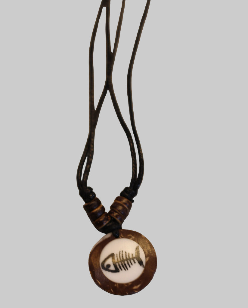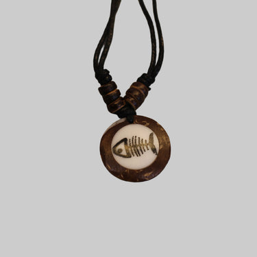 Necklace Black Cord Coco Inlay Fishbone