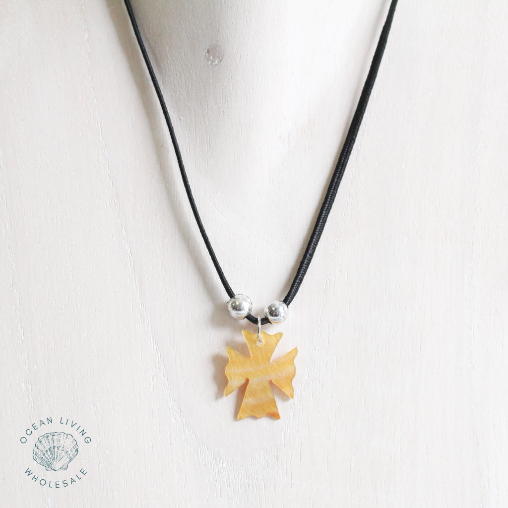 Necklace Black Cord With Brownlip Cross Necklace Black Cord With Brownlip Cross