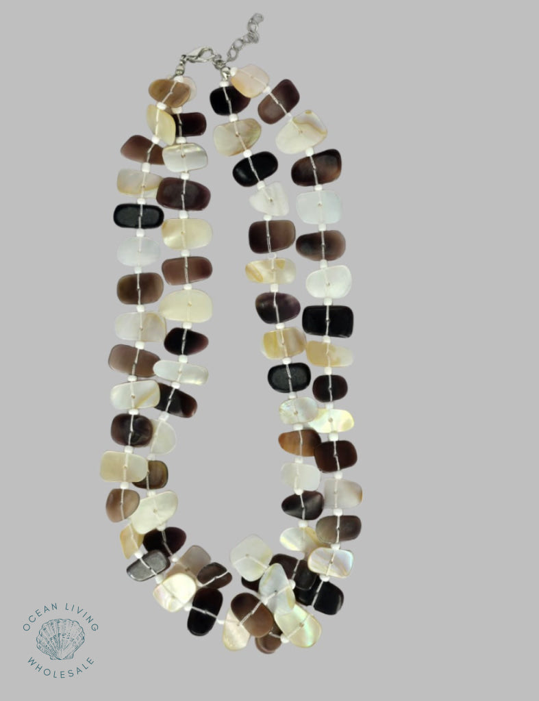 Necklace Crazy Cut Blacklip 2 Strands 18"
