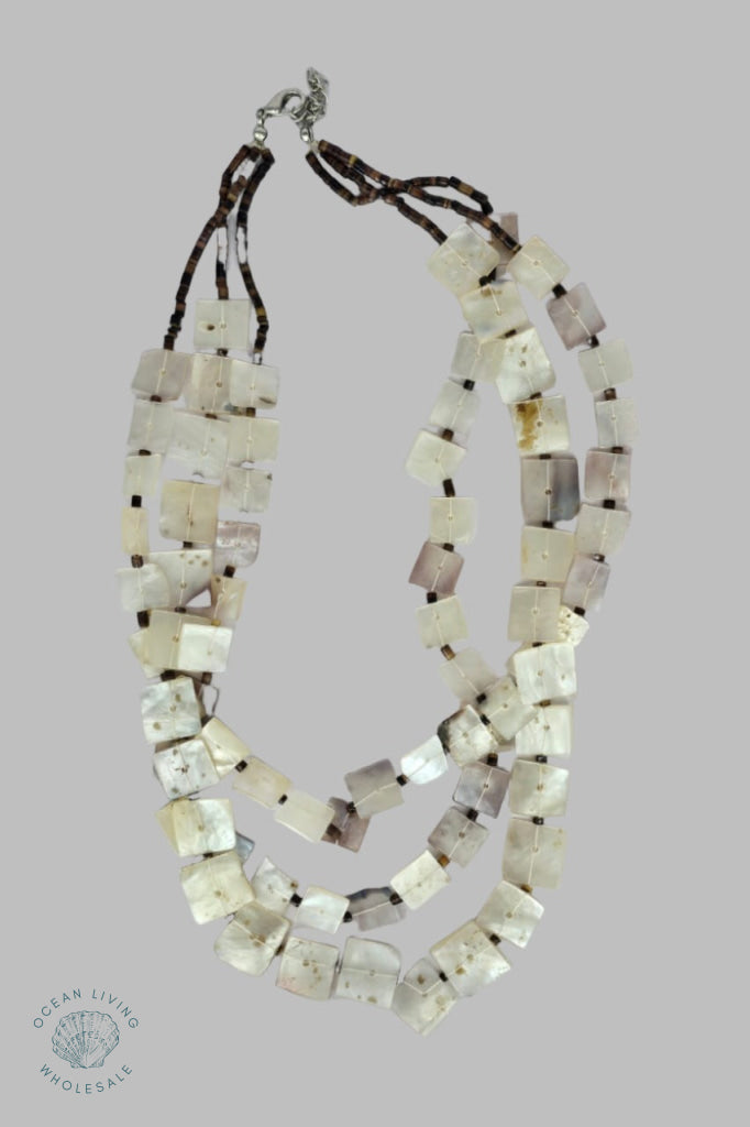Home Shop Necklaces Necklace Hammer Shell Square Cut 3 Strands.