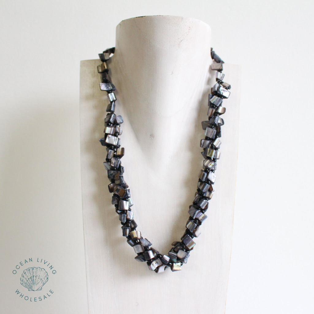 Necklace Shell Square 3 Strands Black Necklace Shell Square 3 Strands Black
