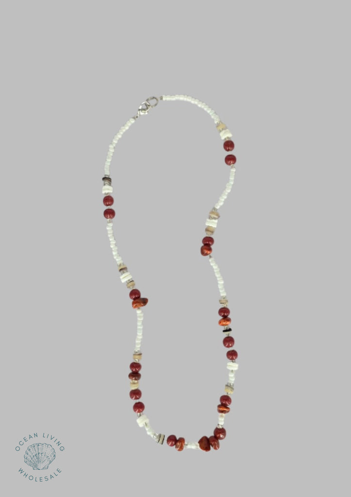 Home Shop Necklaces White Beads With Mother Of Pearl Chips And Orange Stone 18"