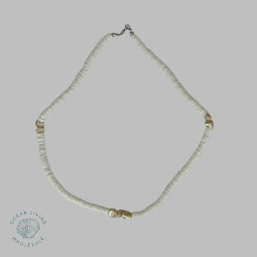 White shell with brown shell 4-5mm 18’’ Necklace White shell with brown shell 4-5mm 18’’ Necklace