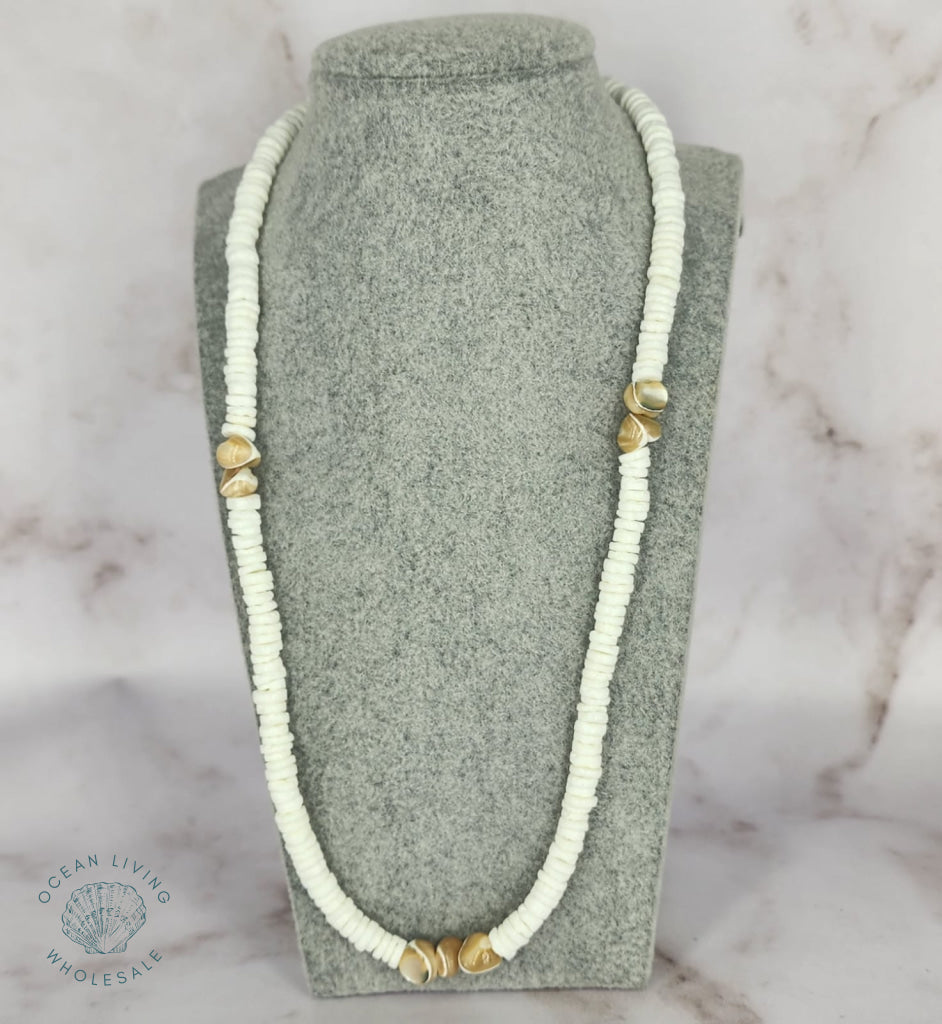 White shell with brown shell 4-5mm 18’’ Necklace