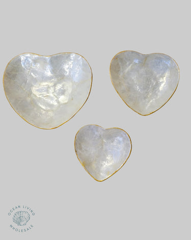 Capiz dish heart shape set of 3. 17cm,13cm,11cm