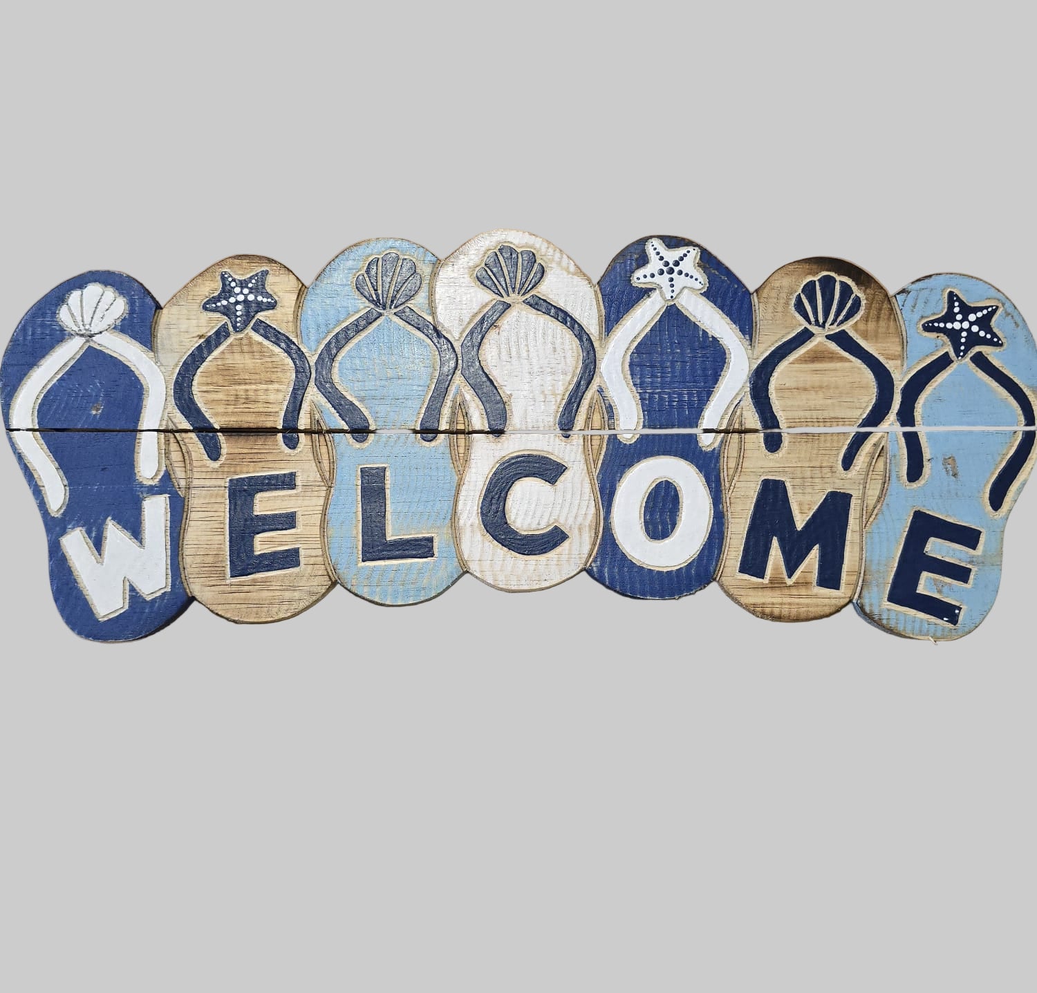 Home Shop New Items Wooden Board (50x20cm) Welcome sandals.