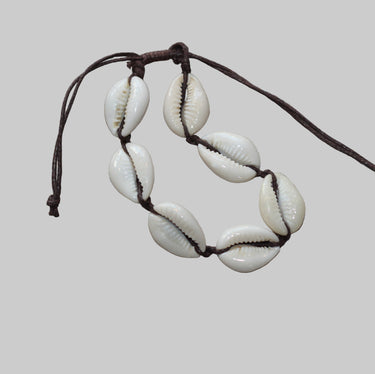 Bracelet cowrie brown cord.