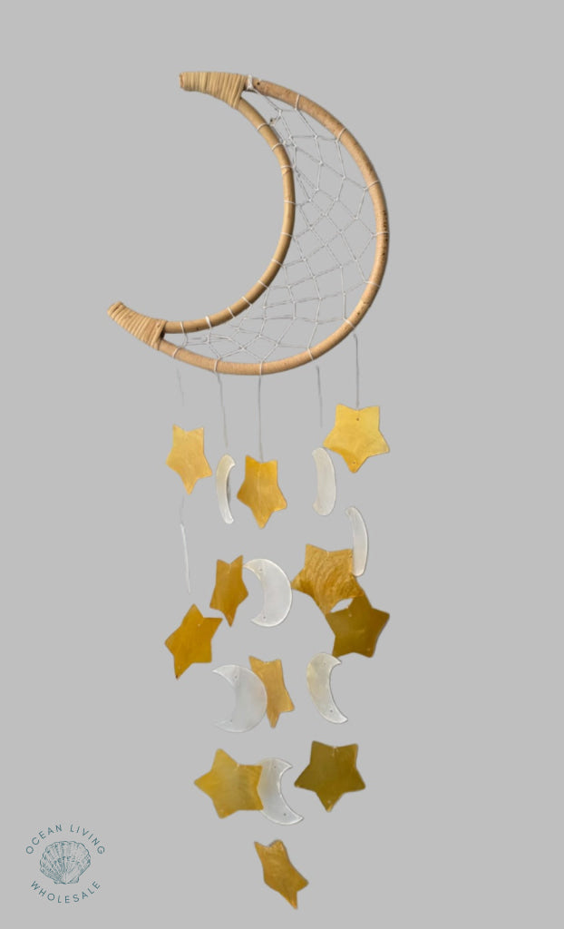 Our shell hangers and wind chimes are beautifully handcrafted in the Philippines by skilled artisans who have perfected the art of creating stunning pieces from natural materials, including Capiz shells. Each hanger and chime is made with care and attention to detail, ensuring that every piece is unique and of the highest quality.