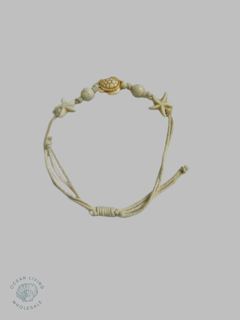 Cream Cord With White Starfish Turtle And Bead. Bracelet