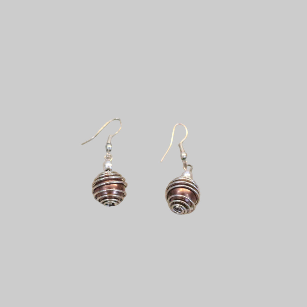 Earring Bead In Wire Design Brown Earring Bead In Wire Design Brown
