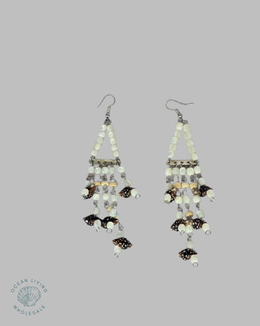 Earring Black Shell With Dangling Mother Of Pearl Earring Black Shell With Dangling Mother Of Pearl