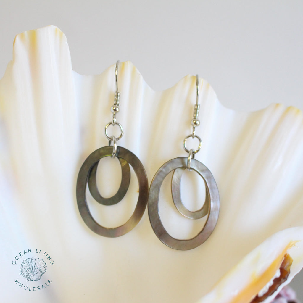 Earring Blacklip Oval Double