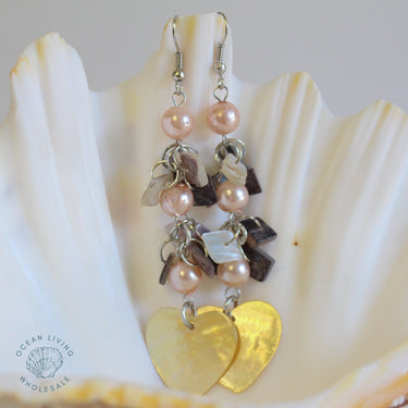 Earring Pearl Bead Mop Heart Drop Earring Pearl Bead Mop Heart Drop