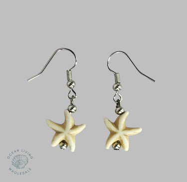 Earring White Starfish With Silver Beads. Earring White Starfish With Silver Beads.