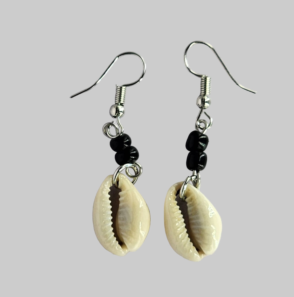 Earring with Sliced Cowrie and Black Beads