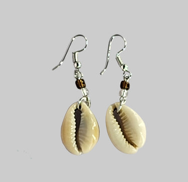 Home Earring with Sliced Cowrie and Clear and Brown Beads