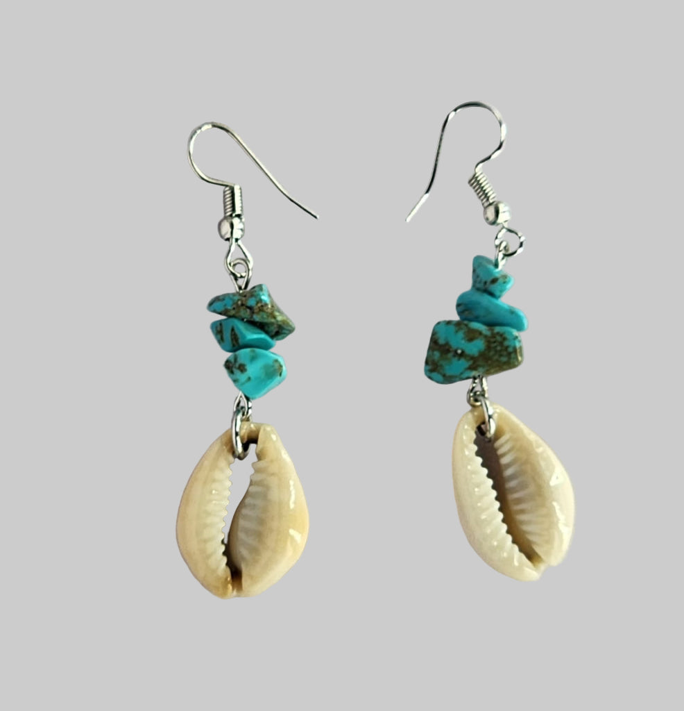 Home Earring with Sliced Cowrie and Dark Blue Stone