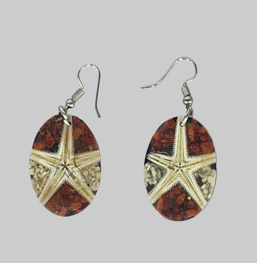 Inlaid shell oval starfish with red earring.