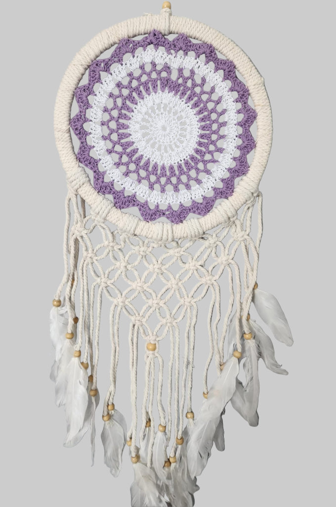 Macrame Dreamcatcher Purple And White 22Cm. Macrame Dreamcatcher Purple And White 22Cm.
