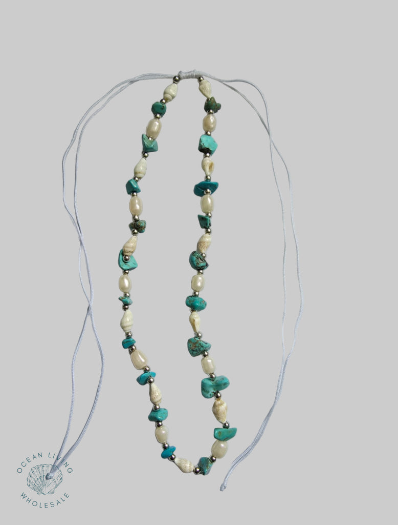 Necklace white nassa blue stone with white pearl bead. Bracelet