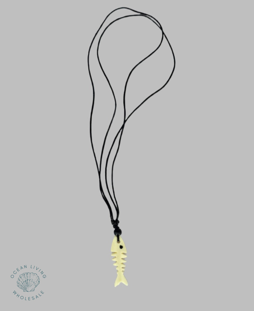 Necklace Black Cord With Fish Bone Necklace Black Cord With Fish Bone