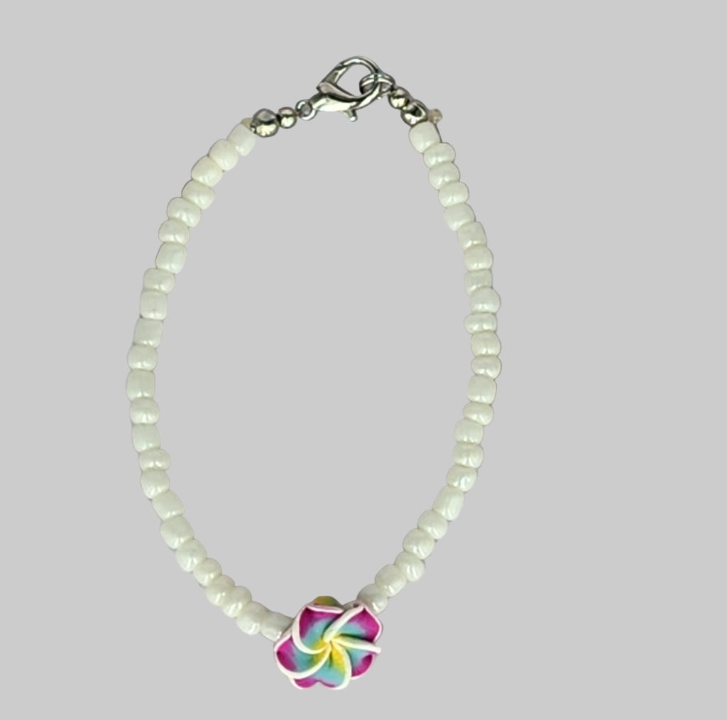 White bead with flower assorted color bracelet.