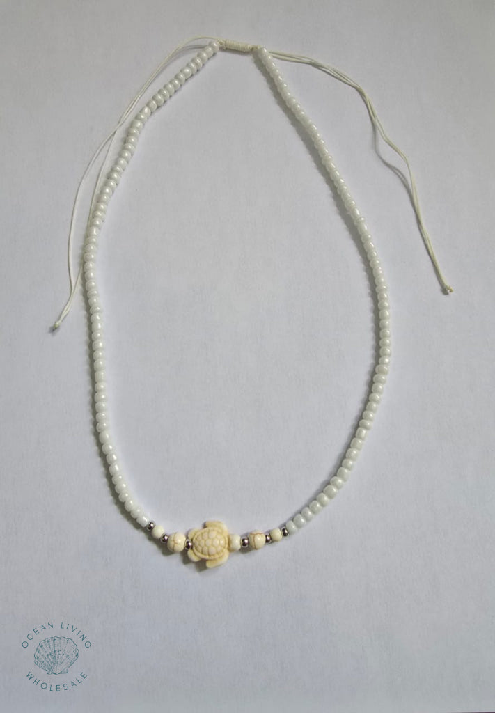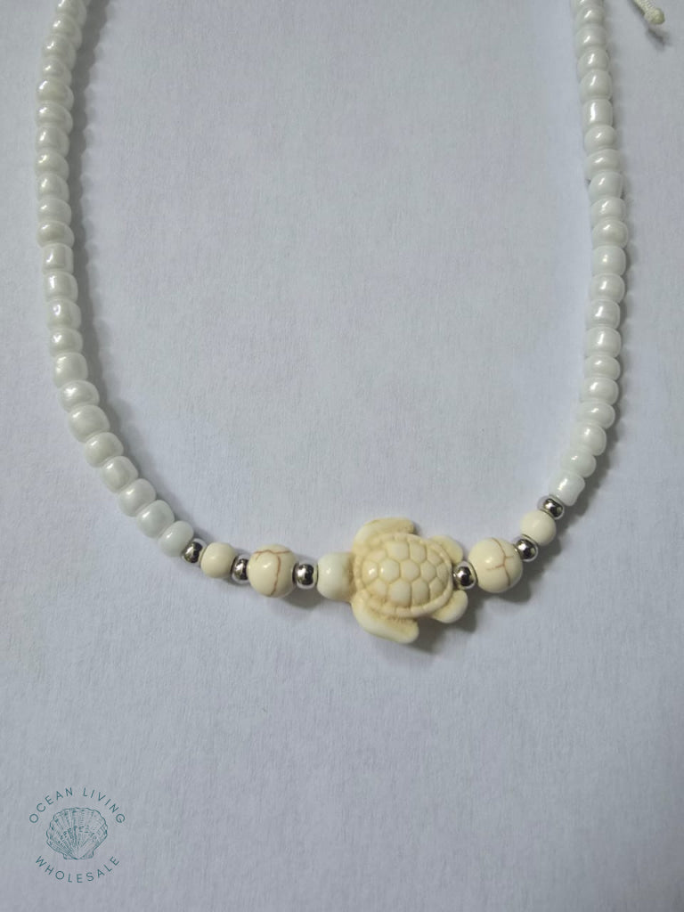 Home White beads with white turtle 18"