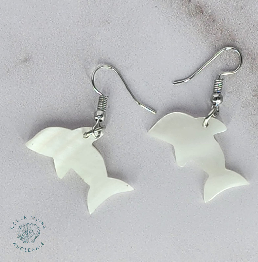 White mop dolphin earring.