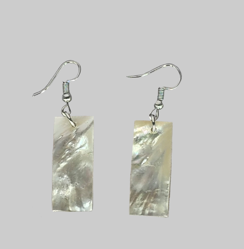 Home White mop shell rectangle earring.