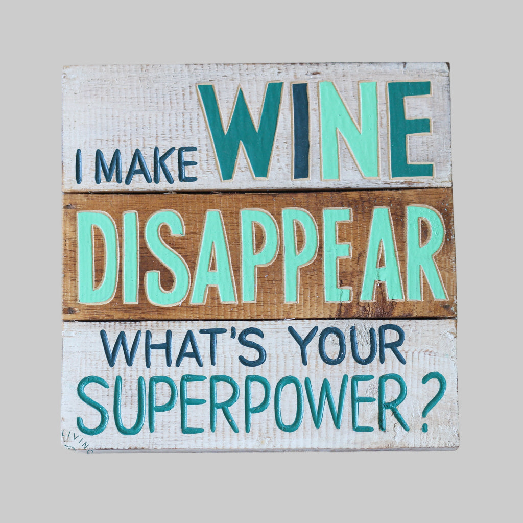 Wooden Sign (30X30Cm) I Make Wine Disappear