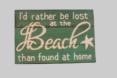 Wooden Sign (37X25Cm) Id Rather Be Lost At The Beach........ Wooden Sign (37X25Cm) Id Rather Be Lost At The Beach........